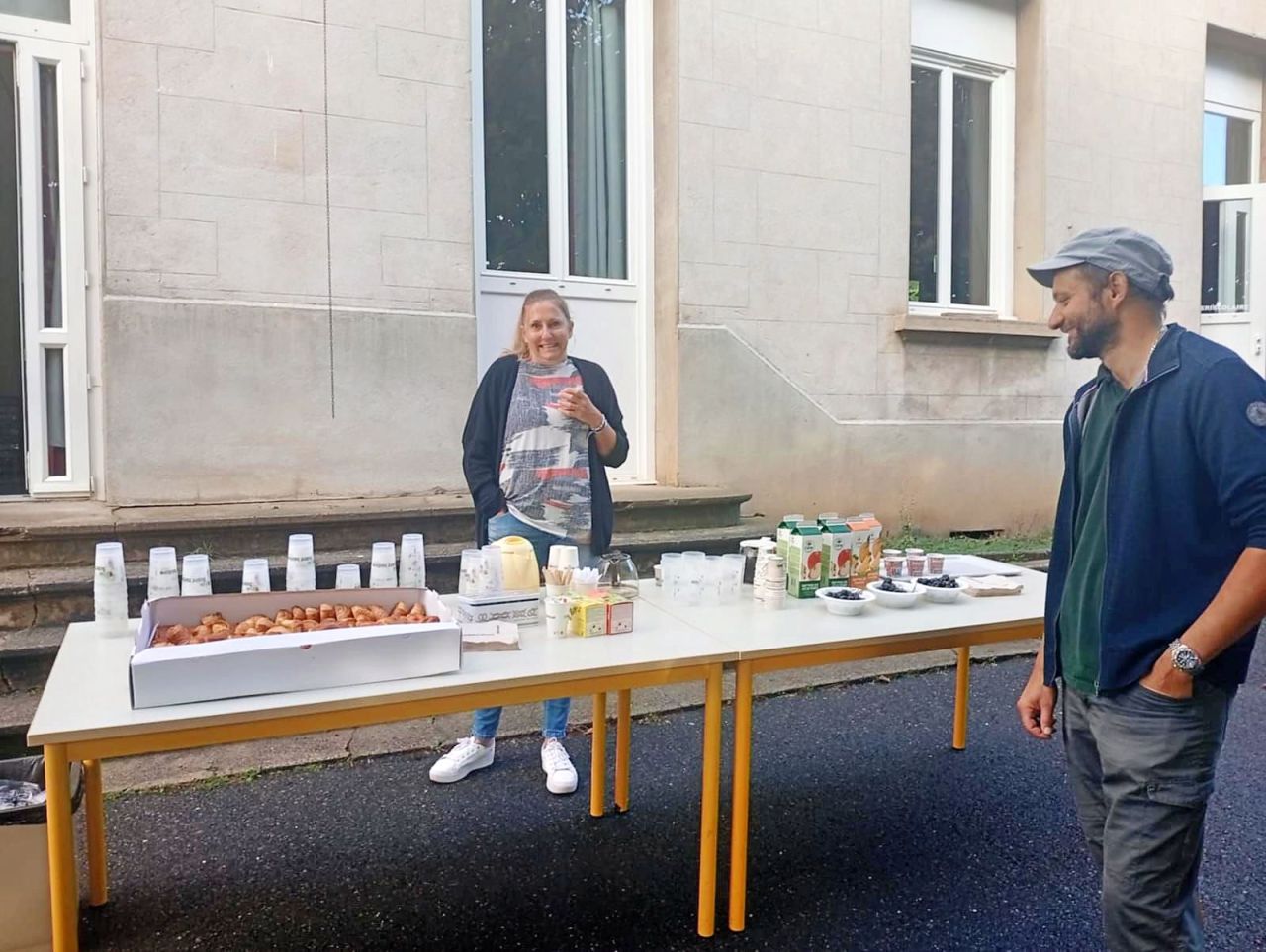 Lundi 1er Septembre 2025, matin de rentrée, la cour de l’école s’est animée de rires, d’échanges et de joyeuses retrouvailles. Parents, familles et élèves ont partagé un moment convivial autour d’un café et de viennoiseries offertes par l’APEL, dans une atmosphère chaleureuse et bienveillante.