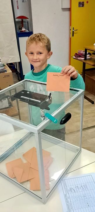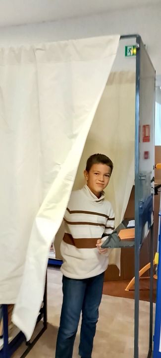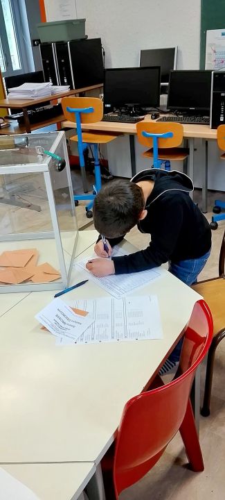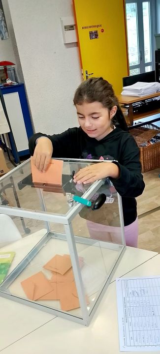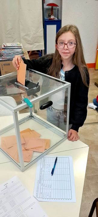 Les élèves ont ensuite voté dans les règles de l’art : *isoloir, urne, émargement… et bien sûr le dépouillement* sous l’œil attentif de tous...